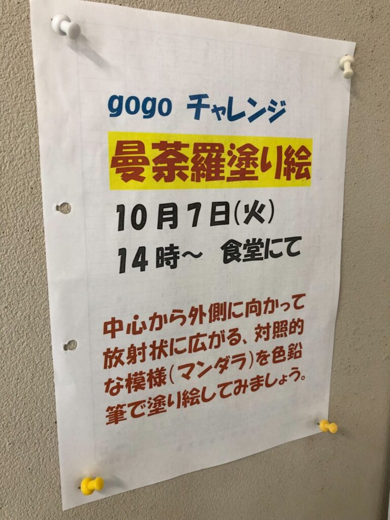 今月のGoGoチャレンジは、曼荼羅塗り絵。奥深すぎる世界…。以下、google先生のご説明です。曼荼羅とは、密教の世界観を象徴的に表した図像で、インドのサンスクリット語に由来し、「中心」や「本質」を意味します。宇宙や仏の世界を幾何学的に表現し、瞑想や精神安定に用いられるアートセラピーでもあり、日本には奈良時代に密教とともに伝わりました。胎蔵界と金剛界の2つの世界を表す「両界曼荼羅」などが有名です。