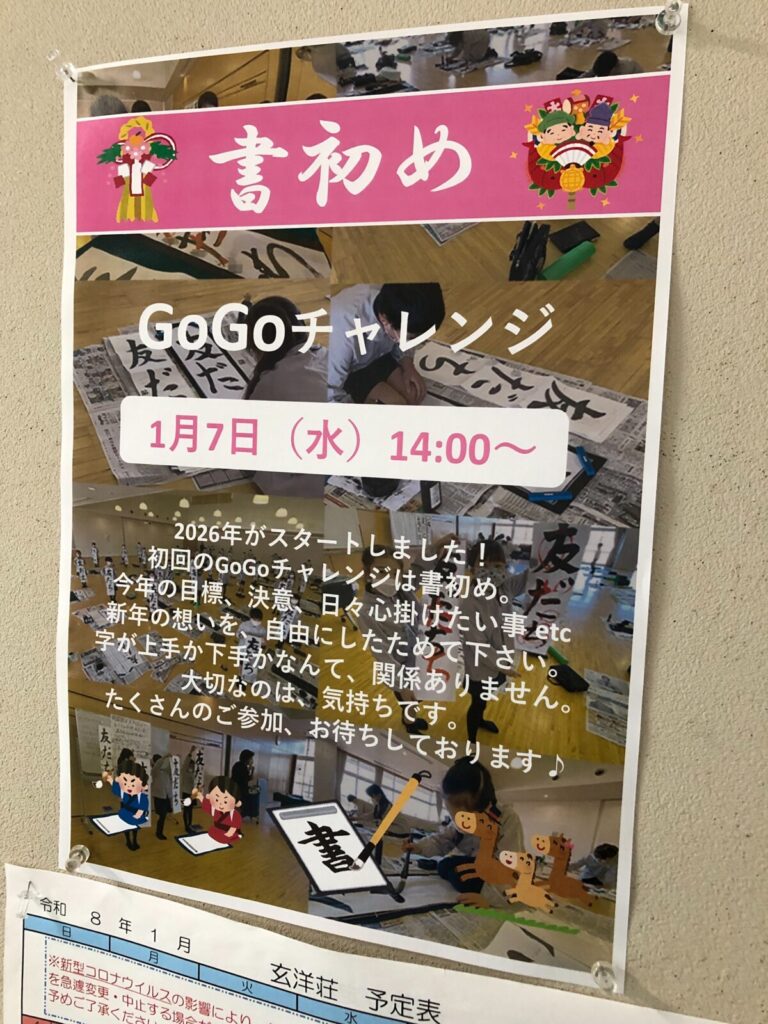 新年第1回目のGoGoチャレンジは書初め!参加頂いただけでも敬意です。皆さんの真剣に取り組む姿勢と、硬派な企画に臨んで頂いた気概、本当に頭が下がります。写真最下部の書は、御年96歳の方によるものです。